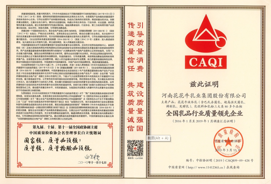 • 全國(guó)乳品行業(yè)質(zhì)量領(lǐng)先企業(yè)