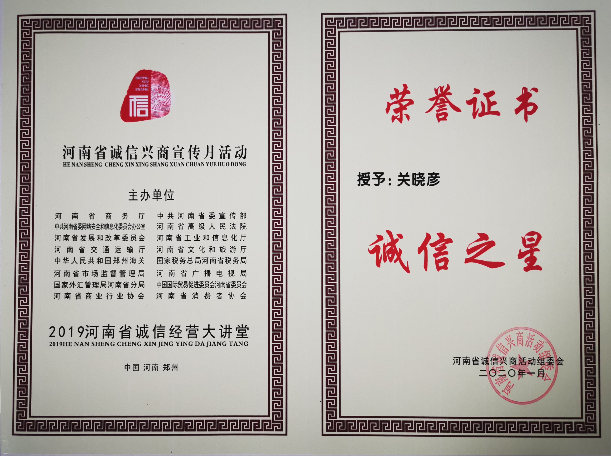 • 駐馬店市優(yōu)秀企業(yè)家榮譽(yù)稱(chēng)號(hào)