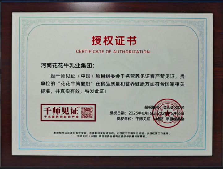 隨后雙方舉行授牌儀式。據了解,河南花花牛乳業(yè)集團是*通過千師見證(中國)項目組委會“千名營養(yǎng)師”認證的企業(yè)。此次授牌含金量相當之高,標志著花花牛在質量管控、技術創(chuàng)新、產品健康方面,為區(qū)域乳業(yè)高質量發(fā)展樹立了新范式。