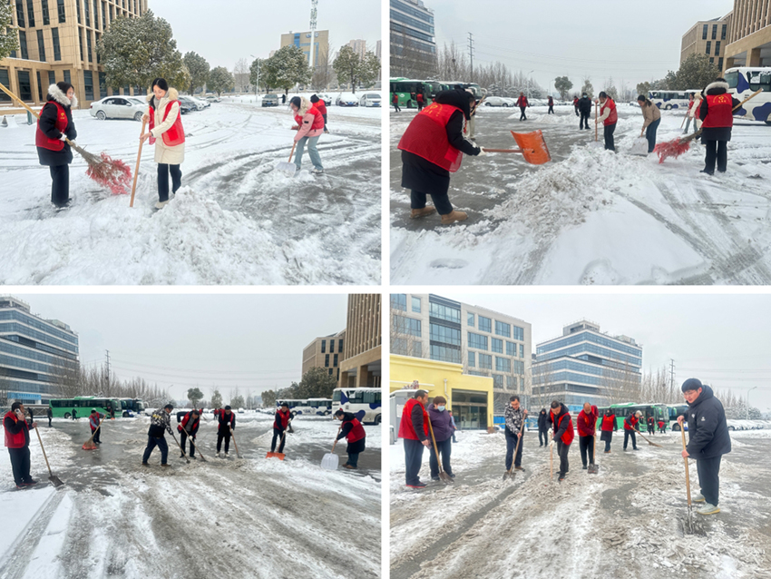 經過兩個多小時的連續(xù)奮戰(zhàn),原本濕滑難行的道路煥然一新,辦公樓出入口、人行通道等關鍵點位全部暢通無阻,有效消除了安全隱患,為全體員工筑起一道堅實的“紅色安全屏障”。在集團黨委的號召下,各分子公司黨支部也分別組織開展除雪作業(yè),確保責任區(qū)域的安全。大家用實際行動詮釋了奉獻與擔當,讓鮮紅的黨旗在清雪一線高高飄揚,也為企業(yè)寒冬里的安全生產和有序運行提供了堅實保障。